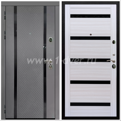 Входная дверь Армада Престиж Черная шагрень Графит абсолют софт ФЛС-500 СБ-14 Черное стекло Сандал белый 16 мм